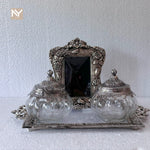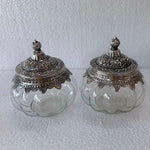 • Material: Clear glass jars with metal lids and metal tray/photoframe in a German silver finish; matching lids included.