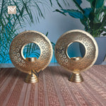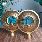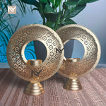 Round candle stand pair in a golden finish for homedecor, table décor, gifting, and Diwali. Textured circular frames with cutout centers create a stylish, modern look and warm glow—ideal for consoles, center tables, and pooja corners.